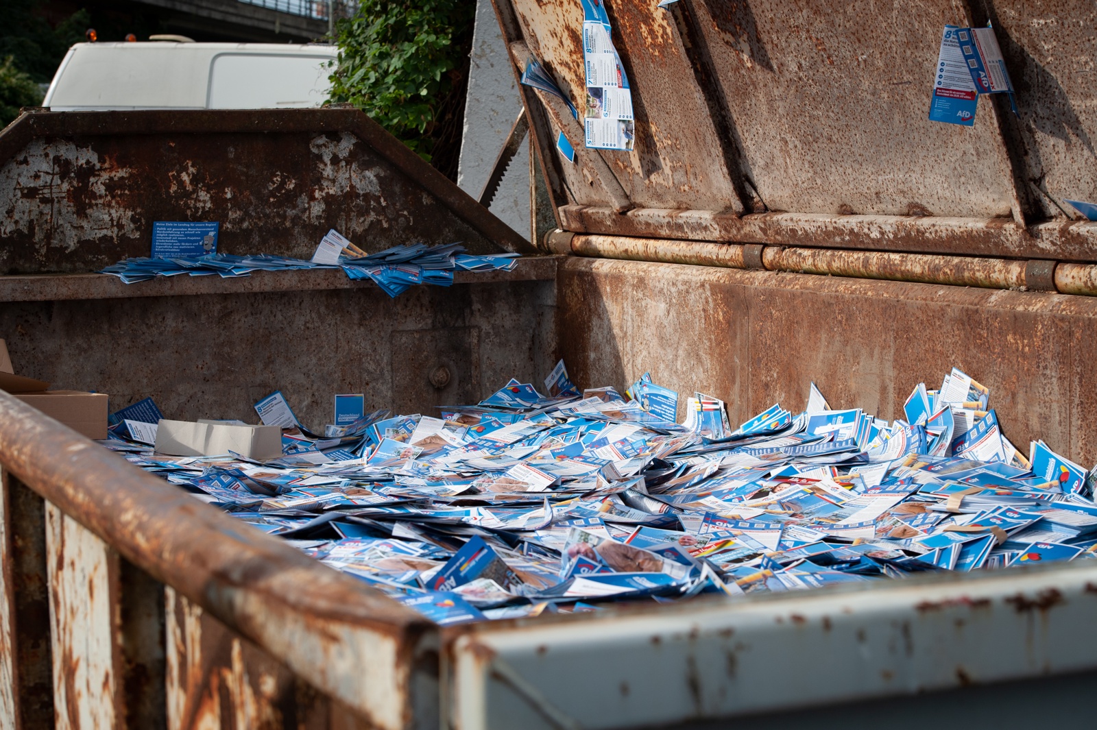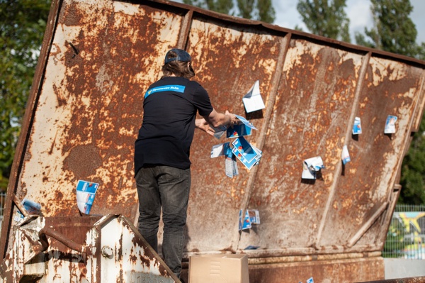 On September 30th, the ZPS invited to an “open house” where they presented about 30 tons of the 72 tons of campaign materials they got delivered by the AfD. All pictures in the following series are from this “open house” event.