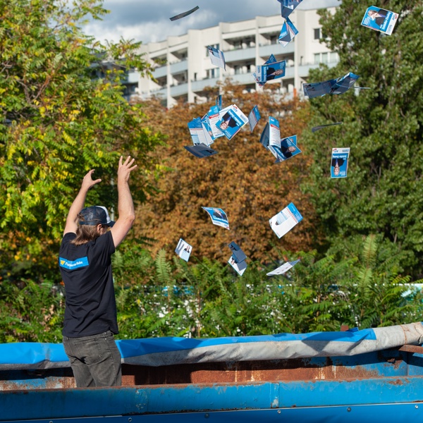The AfD delivered about 72 tons of materials to the Flyerservice Hahn. As the ZPS told the customers of the Flyerservice on the Tuesday before the election, they unfortunately “couldn’t distribute the materials”.